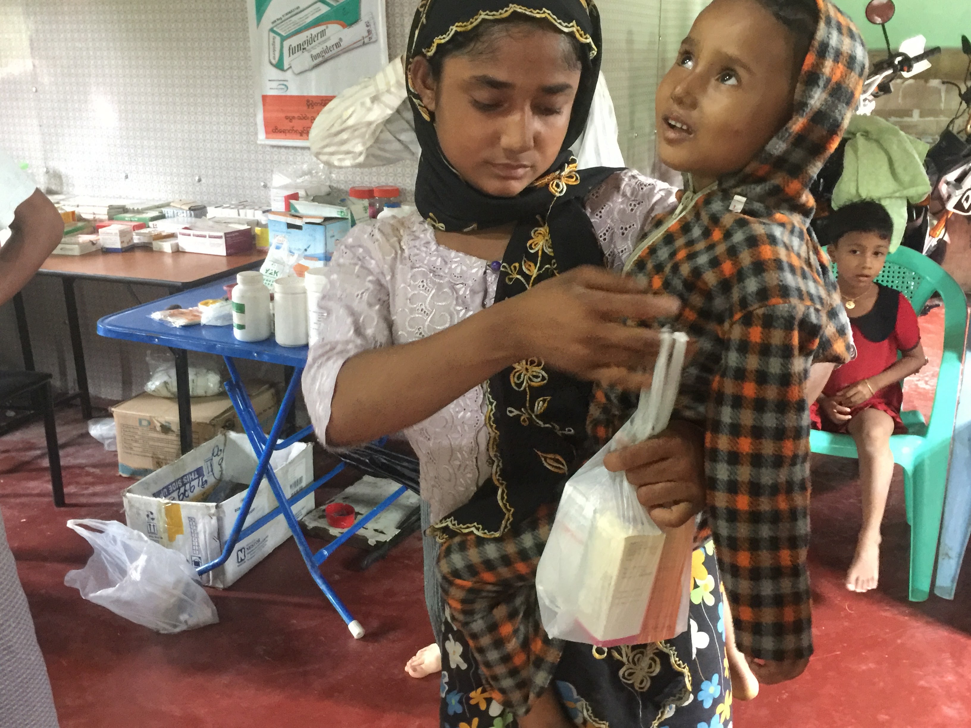 Aneta Begum, 25, is treated for a head injury by staff member Jacqueline Murekezi at a Doctors Without Borders clinic on Oct. 4, 2017 in Cox’s Bazar, Bangladesh. Doctors Without Borders has been providing comprehensive basic health care services at their Kutupalong clinic since 2009. Due to the current crisis, the clinic has expanded its inpatient capacity, dealing with approximately 2,500 outpatient treatments and around 1,000 emergency room patients per week. Photo: Paula Bronstein/Getty Images